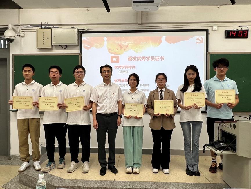 在激昂的国歌声中,典礼拉开帷幕。毛纤雨通报了本期入党积极分子培训班和发展对象培训班教学开展情况,并宣读了入党积极分子培训班优秀学员名单。高东波为优秀学员标兵和优秀学员颁发证书。