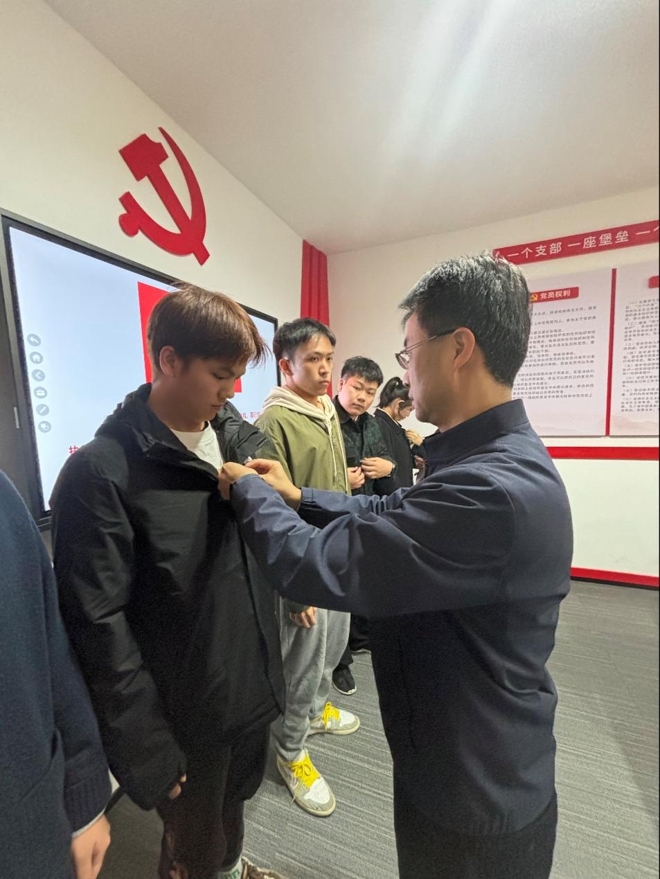 随后,高东波带领全体预备党员宣誓。19名新党员举起右手,面向党旗庄严宣誓,入党誓言,字字铿锵,表达对党的坚定信念和为党的事业奋斗终身的决心。