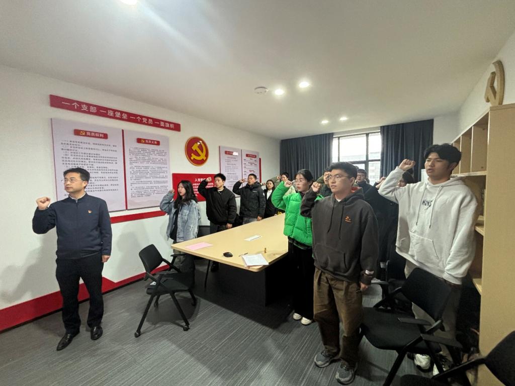 12月4日下午,邓迪国际学院预备党员入党宣誓仪式在外语网络楼634党建活动室顺利举行。学院党总支书记高东波出席并讲话,学办主任、组织员王晓宗老师、全体19名学生预备党员参加宣誓仪式。分团委书记、支部组织委员范帆老师主持仪式。