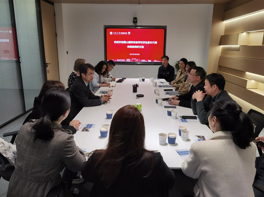 3月30日,来自长沙麓山国际实验学校高中部4个班级的11位学生家长来到邓迪国际学院调研交流。学院党总支书记高东波、外方执行副院长Karen Petrie、辅导员王晓宗、业务办干事张姗姗参与交流。