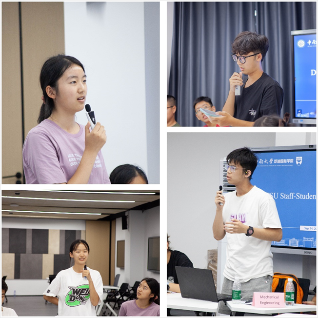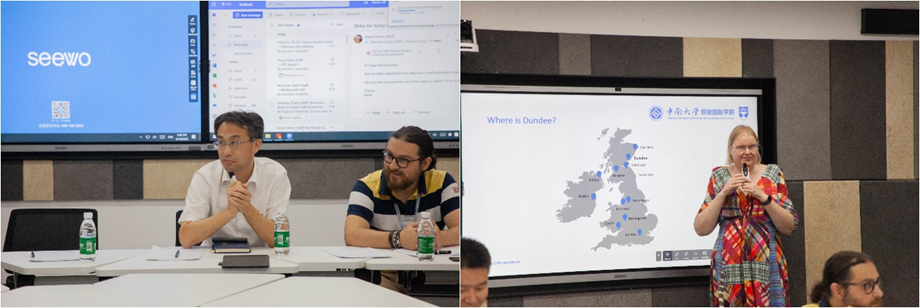9月14日下午,邓迪国际学院在DIICSU 601举行了首次师生座谈会。邓迪国际学院党总支书记高东波、外方执行副院长Karen Petrie、英语组长Charlotte Mahoney、三名专业课外方教师Hanhe Lin、Dimitrios Kontziampasis、Pengpeng He,以及20名学生代表参与了此次座谈会。会议旨在倾听学生对第一周课程的反馈,由教师面对面解答同学们的困惑。