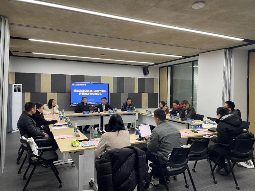活动伊始,第四期中方教师培训团团长王磊老师分享了其赴邓迪大学培训交流的经验,包括培训日程、教学交流、注意事项等。高广军要求大家落实立德树人根本任务,认真学习英方在课堂组织、教案设计、实验开展、考试测评等环节的教学方法和模式。高东波鼓励各位老师增强自信、勤于学习、善于交流、敢于表达,不断提升自己的国际化教学水平,打造一支高水平全英文授课教师队伍,保障邓迪国际学院高质量开展人才培养,并将先进的教学理念和方法辐射校内其他学生,逐步形成示范作用。