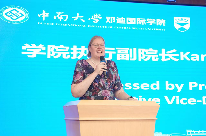 Karen Petrie深入解读了邓迪国际学院与其他学院教学方式的不同,强调了中外合办的独特办学理念,与参会家长们分享了学院将从团结协作、尝试改变、尊重他人、正直诚信、追求卓越等方面鼓励学生成长。