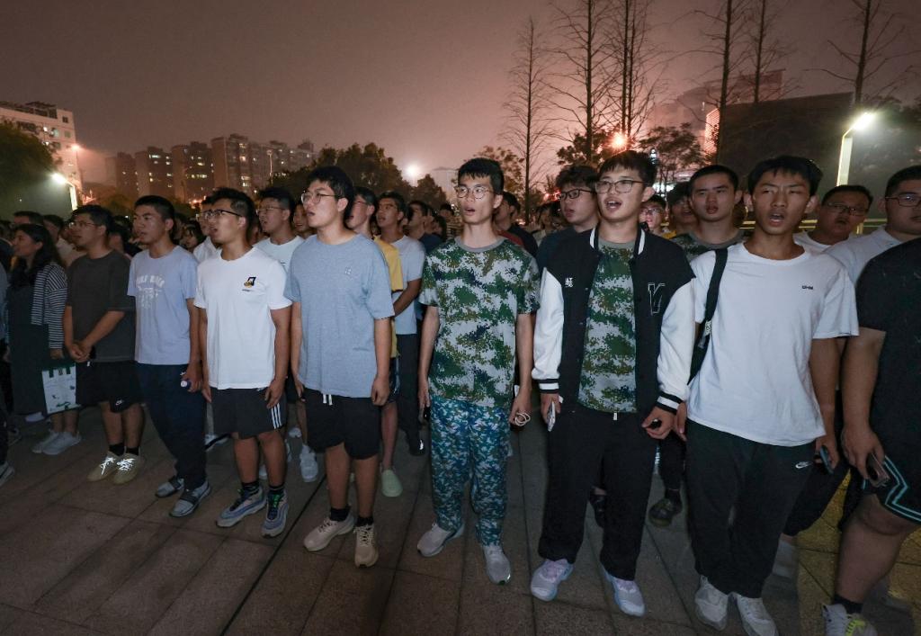 晚上,同学们再次集结,在新校区体育馆前唱响了红歌。今日的练习相较于前几天有了较大进步,全连合唱已基本成型。从开始的分组练习到如今的百人合唱,同学们在疲惫的训练后仍坚持到场是进步的关键。在夜幕下唱响的旋律,铿锵有力,声动人心。