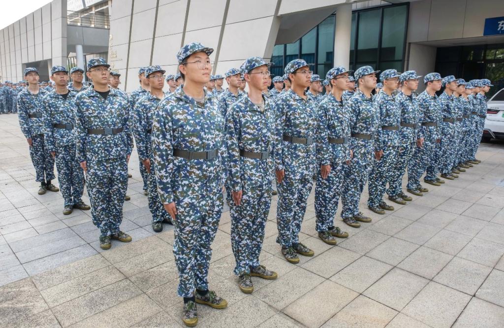 全体新生在新校区体育馆外侧开始了第一天军训训练。同学们告别国庆假期,将以全新的姿态迎接新阶段。