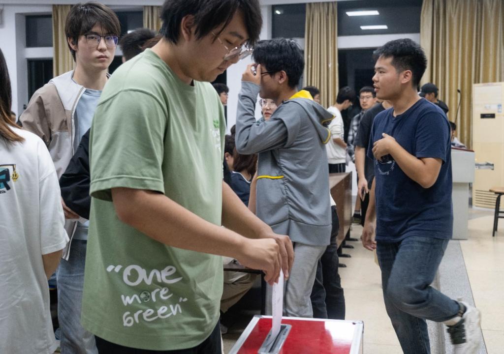 第五次代表大会代表的简历。在选举阶段,各团员代表本着公平、公正、公开的原则填写选票并有序投票。在监票人的监督下,总计票人、计票人清点选票,现场唱票并统计结果。会议选举范帆、朱奕、周周和吴思阳为邓迪国际学院出席共青团98堂