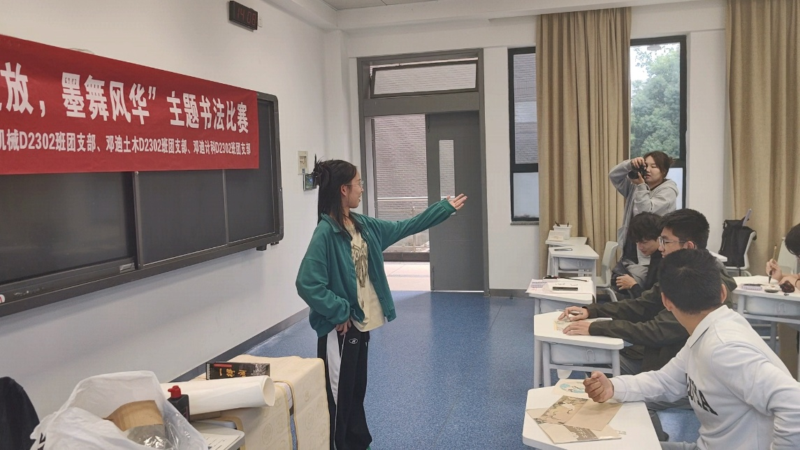 10月19日,邓迪国际学院机械D2302班、土木D2302班及计算机D2302班于A座202教室举办了主题为“华彩绽放,墨舞风华”的书法比赛,并于10月20日在外语网络楼六楼展出作品。全院同学积极参与本次活动。