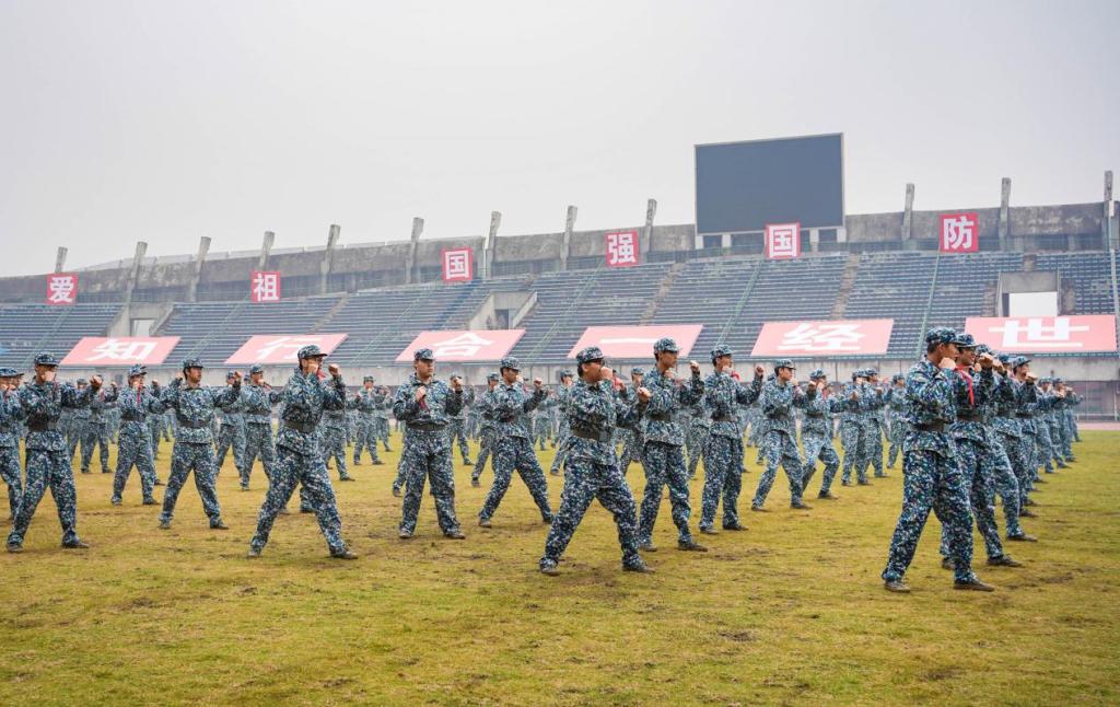 2024级新生军训成果汇报暨总结表彰大会于新校区鸟巢体育馆顺利举行,邓迪国际学院全体2024级新生参加。
