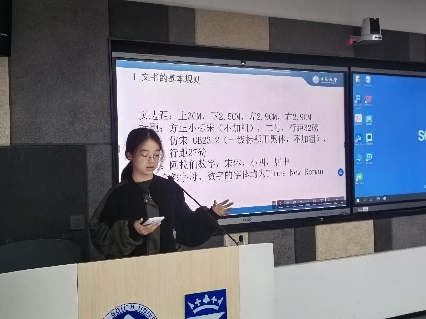 在Word培训环节,周小艺条理清晰地将其分为三个部分进行讲解:文书的基本规则、快捷键的使用以及其他实用技巧。她不仅详细阐述了每个知识点,还引导新干事们同步进行实操,确保大家熟练了掌握Word的各项功能。