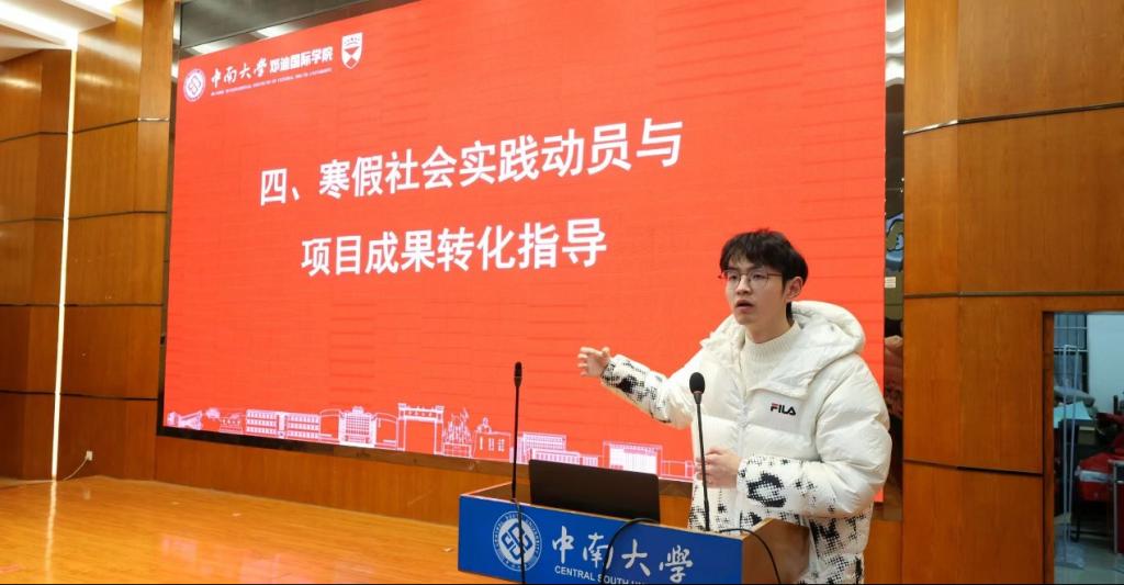 1月8日下午,邓迪国际学院2025年寒假社会实践活动宣讲会暨“升华杯”动员会在外语网络楼一楼报告厅顺利开展。此次活动旨在鼓励同学们积极参与寒假社会实践,提升综合素质与社会责任感,同时能提前了解竞赛,做足充分准备。我院24级辅导员曹阳参加会议,材料科学与工程学院优秀学生刘冠群进行分享,学院团委副书记陈烨主持会议。