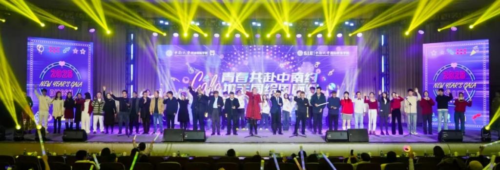 1月11日晚,邓迪国际学院、国际教育学院于中南讲堂联合举办“青春共赴中南约,携手同绘国际梦”2025新年晚会。校领导李景升、何军、黎志宏出席,相关部门领导、两院中外方师生以及部分学生家长共800余人参加晚会。