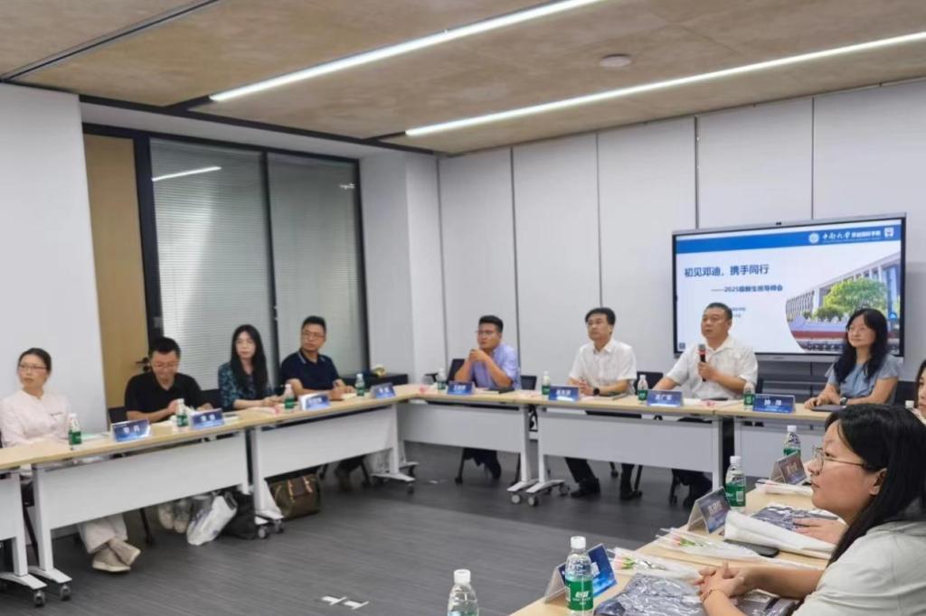 在潇湘校区网络楼622研讨室召开2025级新生班导师工作会议。学院党总支书记高东波、院长高广军、班导师代表钟萍、2025级班导师及新生辅导员参会,会议由王晓宗主持。
