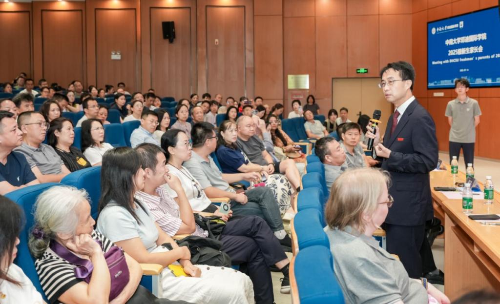 、邓迪大学及邓迪国际学院的基本情况,着重强调了学院始终坚守严格的办学质量标准。此外,他还鼓励家长深入了解中外合作办学的教学特色,加强家校沟通协作,共同助力新生快速适应全新教学体系,为学生的学业发展保驾护航