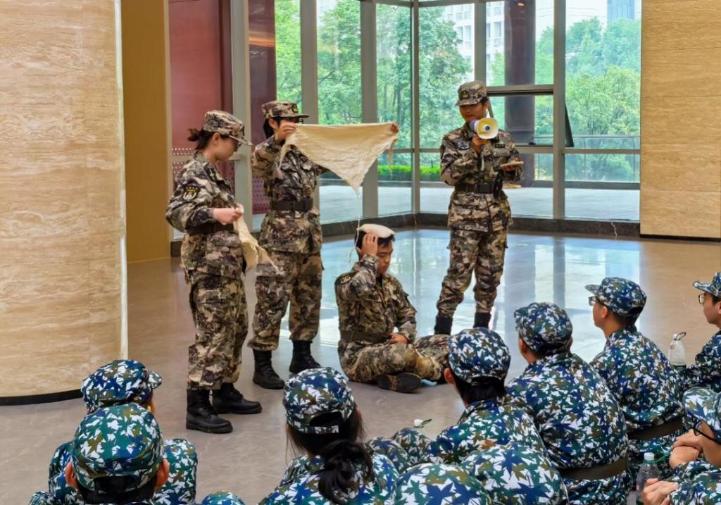 全体学子集结完毕,目光坚定,整装待发。本次拉练以校史馆为终点,途中模拟行军突发情况,开展实战化演练。连长详细讲解避险动作,同学们凝神聆听,动作迅捷有序。抵达校史馆后,新生们沉浸于学校百年发展的壮阔历程,认真聆听讲解员的讲述,深入了解了“向善、求真、唯美、有容”的中南精神。随后,教官团队演示战场上的应急医疗与救护措施,于此,十三连“战士”们深刻体会到行军途中战友携手、共克艰险的珍贵情谊。