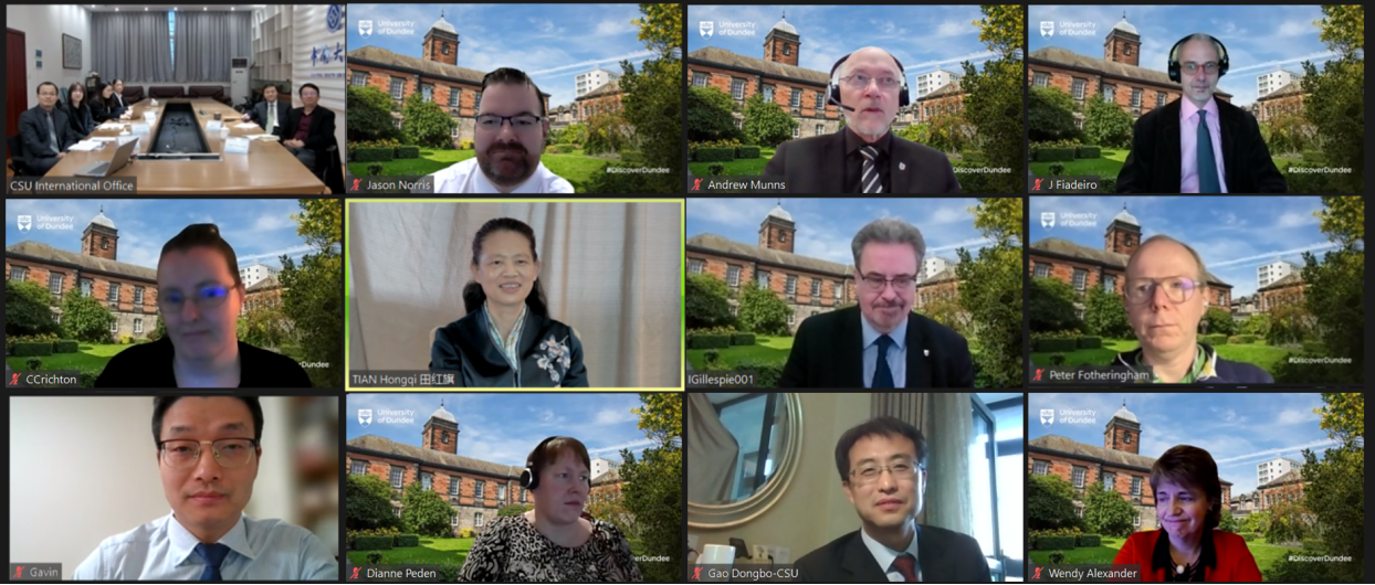 田红旗校长线上会见英国邓迪大学校长Iain Gillespie